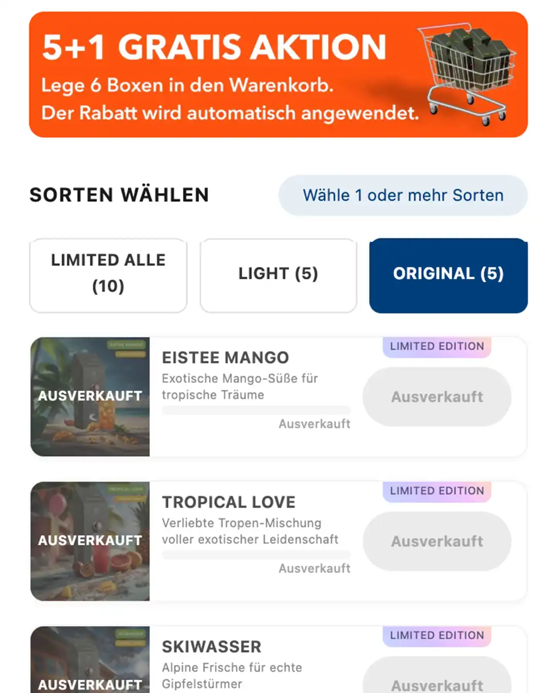 Bei den letzten 18 Limited Editions waren die meisten Sorten innerhalb weniger Minuten bereits ausverkauft. Die Bestandsanzeige der Website verrät dabei, wie viel Bestand noch vorhanden ist.
