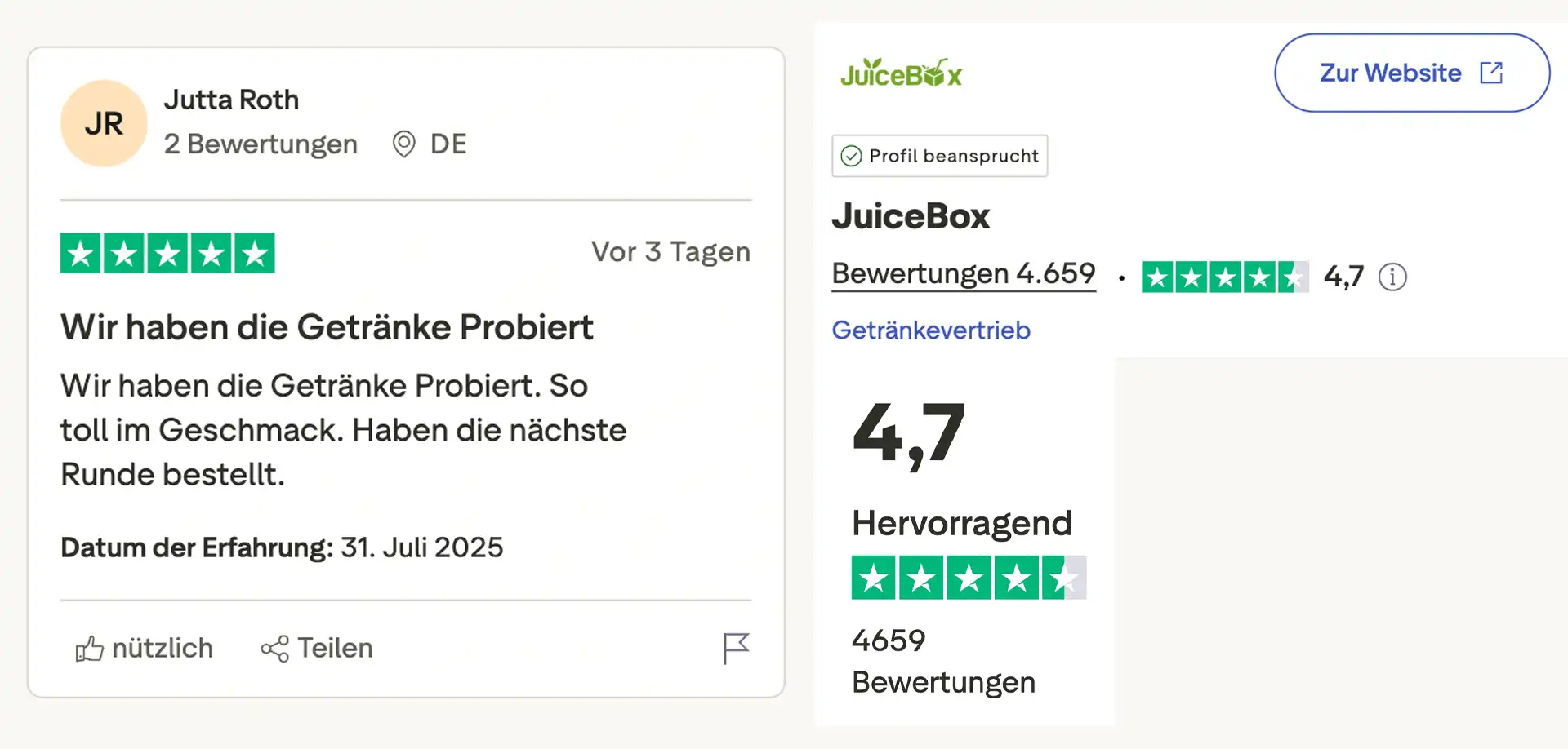 Laut tausenden Kundenfeedbacks, auf neutralen Bewertungsplattformen wie Trustpilot, ist der Geschmack einfach unvergleichlich zu allen anderen Softdrinks am Markt.